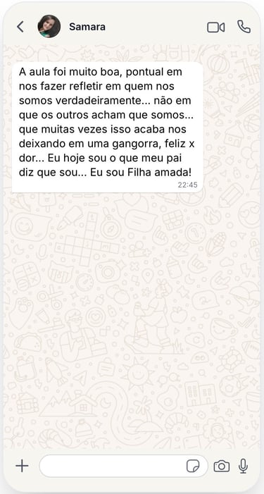 Participe de um ambiente seguro, onde pessoas com a mesma busca caminham juntas, compartilham experiências e recebem acolhimento, fortalecendo o processo de cura e transformação!